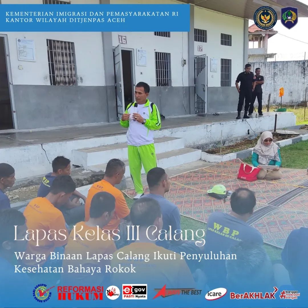 CALANG delikkasus86.com – Lembaga Pemasyarakatan (Lapas) Kelas III Calang menggelar penyuluhan kesehatan bagi warga binaan dengan tema bahaya merokok aktif maupun pasif, Sabtu, 27 September 2025.