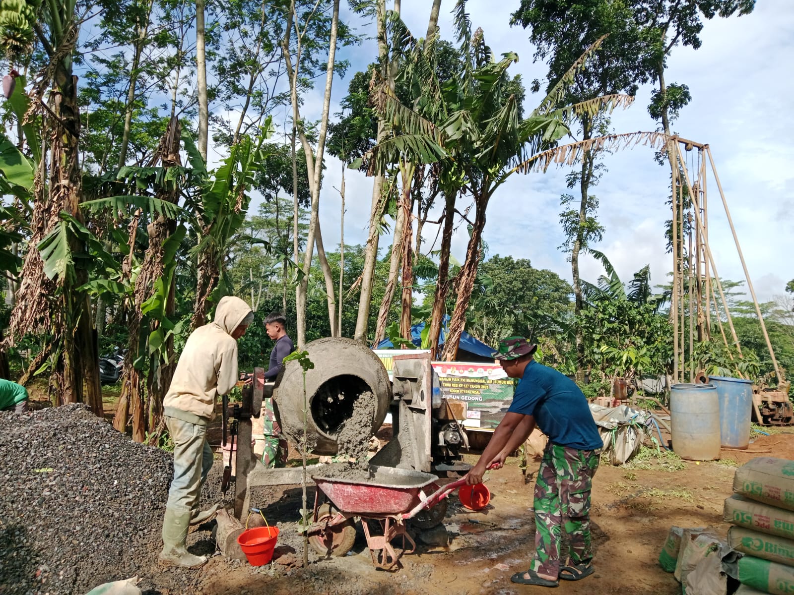 KENDAL Jateng,delikkasus86.conl – Semangat kebersamaan antara warga Desa Gedong dan prajurit TNI kembali terlihat dalam pelaksanaan TNI Manunggal Membangun Desa (TMMD) Reguler ke-127 Kodim 0715/Kendal. Kali ini, sasaran fisik berupa pembangunan tiang toren untuk penampungan air dari sumur bor tengah digarap dengan penuh antusiasme.
